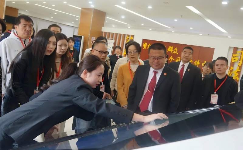 媒体记者团参观了立案窗口、家事调解室、家事文化长廊、执行事务中心、石空法庭,详细了解法院工作流程、审判程序。